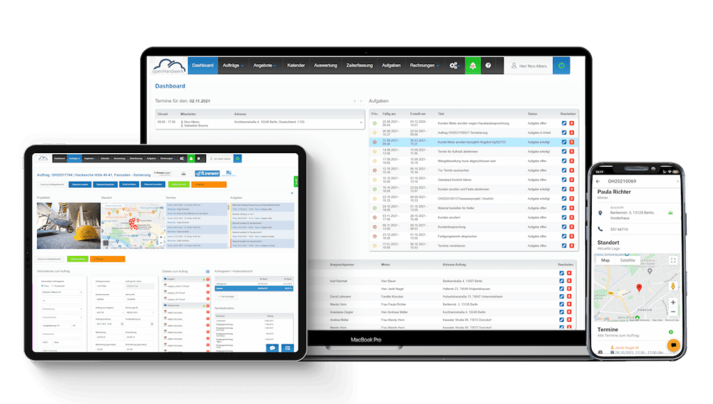 Sie haben einen ersten Eindruck von openHandwerk? Hier finden Sie alle Funktionen und Module für ein digitales und prozessorientiertes Arbeiten in Handwerk und Bau