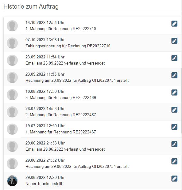 Bei der Dokumentation geht es jedoch nicht nur um Bilder und/ oder Dokumente. Ein wesentlicher Bestandteil ist die Dokumentation Büro <> Baustelle und Büro <> Auftraggeber. openHandwerk schreibt hier automatisch Historien mit und gibt Ihnen die Möglichkeit, individuell Nachrichten aus der stattgefundenen Kommunikation zu hinterlegen.