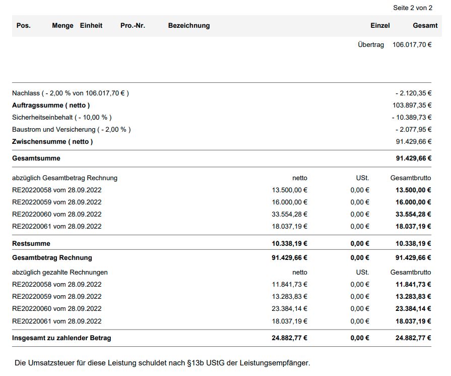 Auch Sicherheitseinbehalte, Baustellenkosten und Skonto finden Beachtung in Ihren Rechnungen.