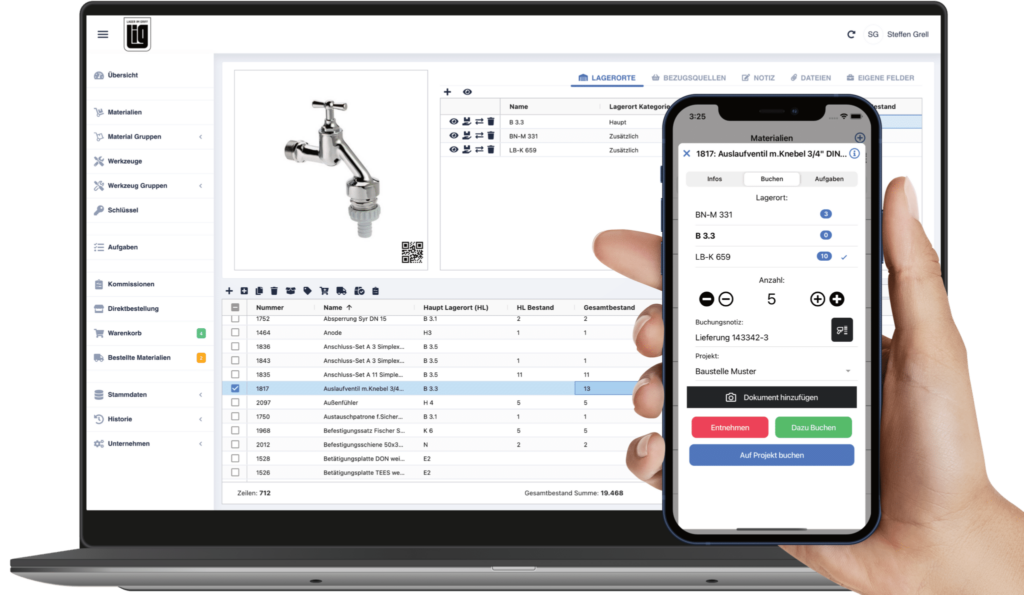 Lagerverwaltung, Maschinenverwaltung, Geräteverwaltung und Schlüsselverwaltung in einer Symbiose mit der Cloudsoftware openHandwerk.