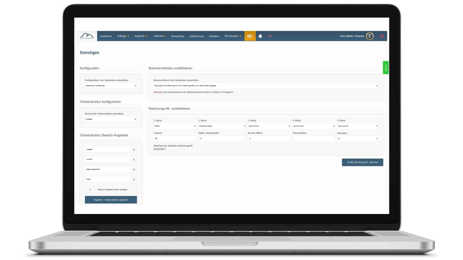 Die Eingaben unter dem Menüpunkt Sonstiges sind ein mächtiges Werkzeug und haben Auswirkungen auf die komplette Cloudsoftware openHandwerk und dessen Funktionen.
