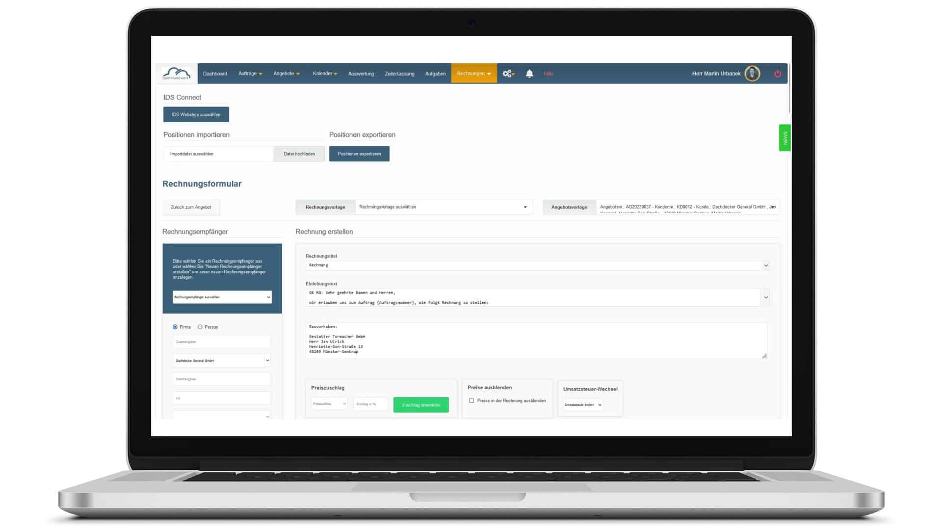 • Planung aus der Angebotsmappe / Auftragsmappe